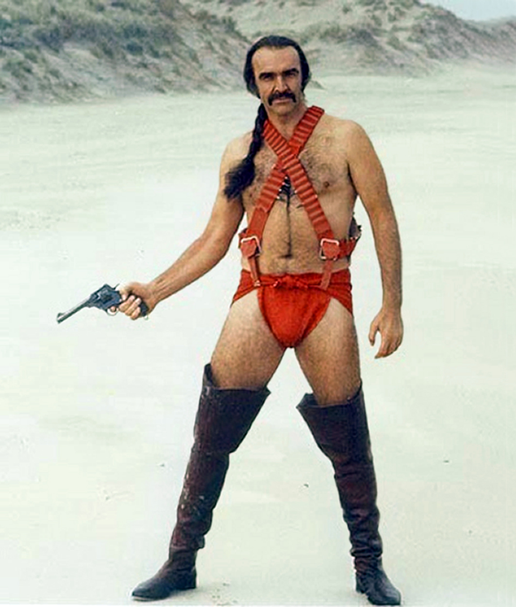 ¡Mirad si no a Sean Connery, todo un ejemplo de hombría de pelo en pecho, con ese disfraz tan ridículo que se gastaba en los setenta, en el clásico film de ciencia ficción: Zardoz!
