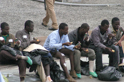¡Dejadme subir, mamones! ¡Yo también tengo derecho a mi renta básica! ¡Que soy el hijo de Obiang! ¡Teodorín! (buah, lo que pague ahora a los funcionarios marroquíes con la mierda esta de moneda me lo compensa la renta garantizada en euracos)